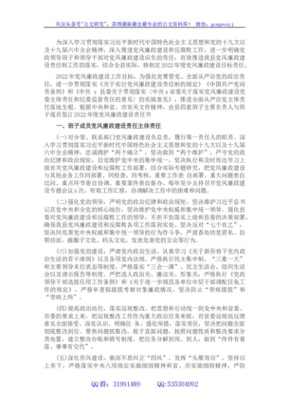 / 全县2022年党风廉政建设目标责任书