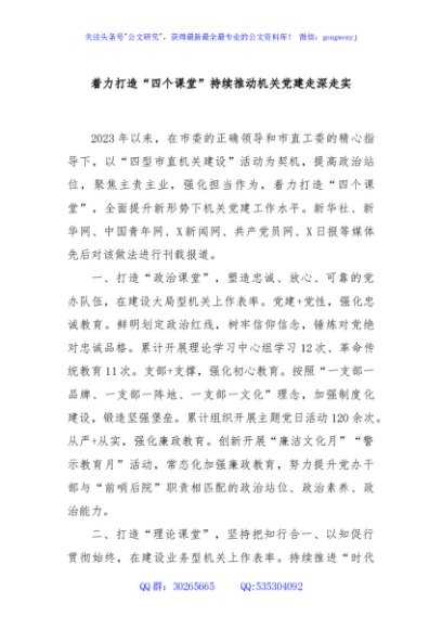 / 着力打造“四个课堂”持续推动机关党建走深走实