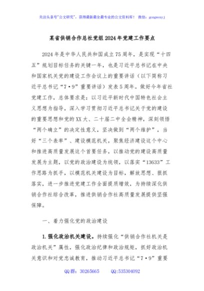 / 某省供销合作总社党组2024年党建工作要点