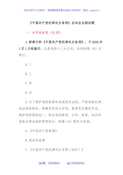 / 《中国共产党纪律处分条例》应知应会测试题
