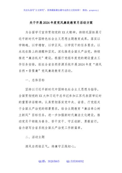 / 关于开展2024年度党风廉政教育月活动方案