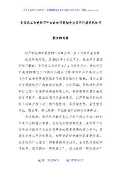 / 全国总工会党组召开会议学习贯彻中央关于开展党纪学习教育的部署