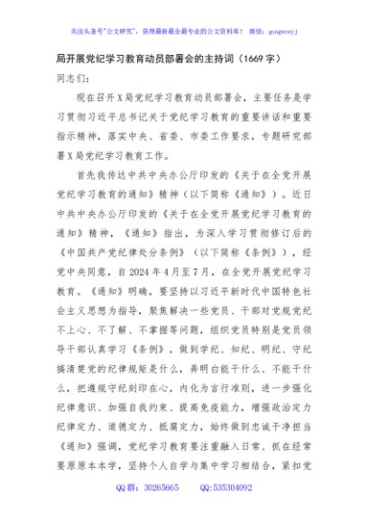 / 局开展党纪学习教育动员部署会的主持词