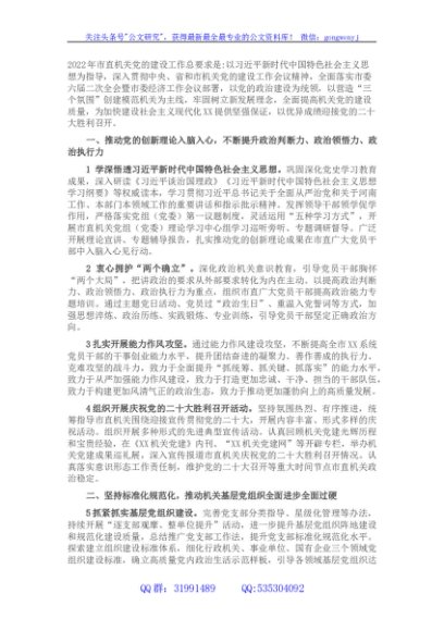 / 2022年市直机关党的建设工作要点