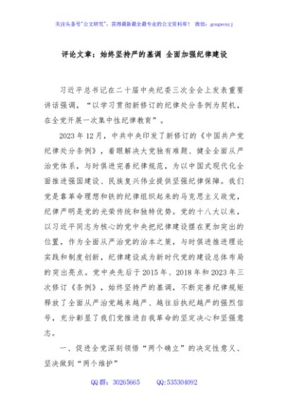 / 评论文章:始终坚持严的基调 全面加强纪律建设