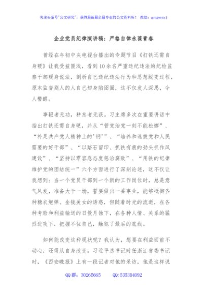 / 企业党员纪律演讲稿:严格自律永葆青春