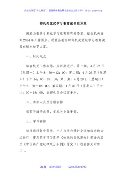 / 部机关党纪学习教育读书班方案