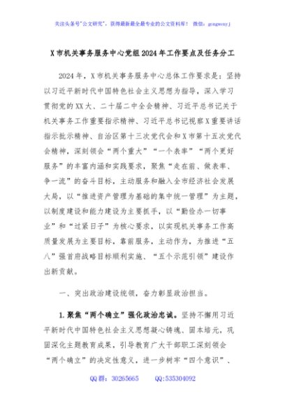 / X市机关事务服务中心党组2024年工作要点及任务分工