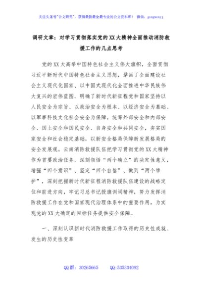 / 调研文章:对学习贯彻落实党的XX大精神全面推动消防救援工作的几点思考
