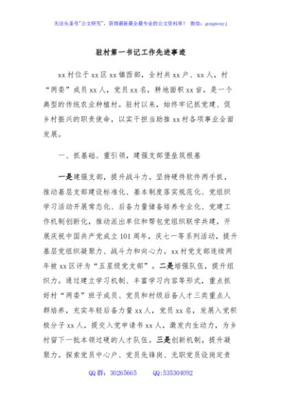 / 驻村第一书记工作先进事迹