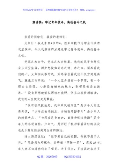 / 演讲稿:牢记青年使命,高扬奋斗之帆