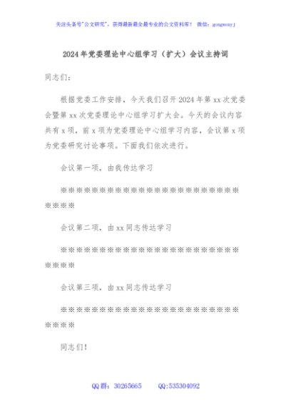 / 2024年党委理论中心组学习(扩大)会议主持词