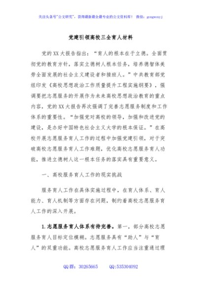 / 党建引领高校三全育人材料