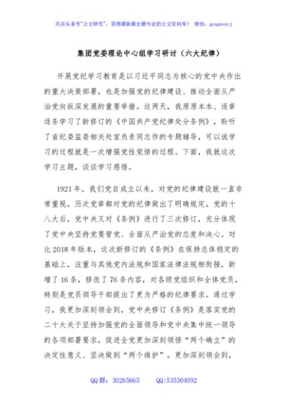 / 集团党委理论中心组学习研讨(六大纪律)