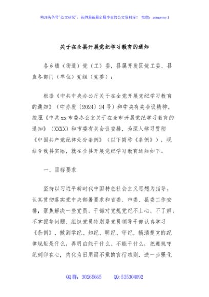 / 关于在全县开展党纪学习教育的通知