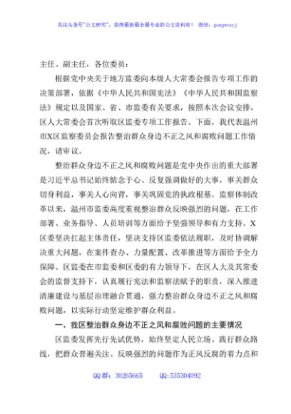 / 纪委监委整治群众身边不正之风和腐败问题工作情况的报告