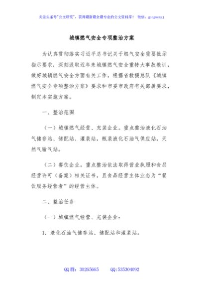 / 城镇燃气安全专项整治方案