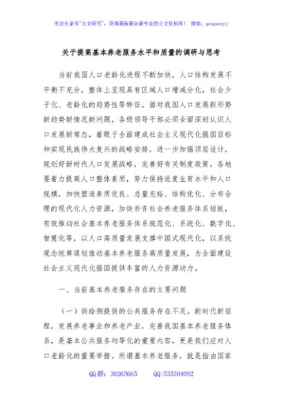 / 关于提高基本养老服务水平和质量的调研与思考