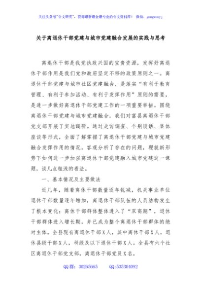 关于离退休干部党建与城市党建融合发展的实践与思考