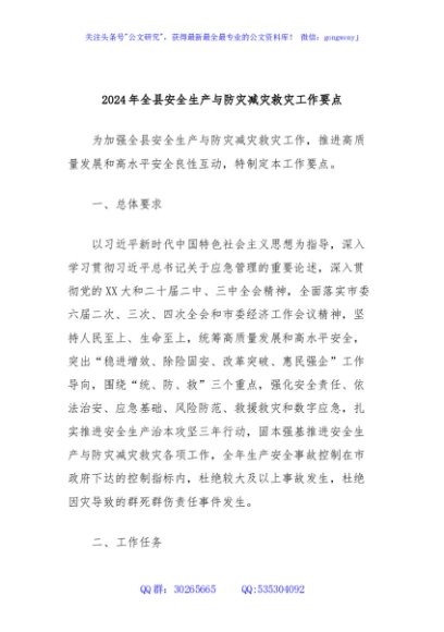 / 2024年全县安全生产与防灾减灾救灾工作要点