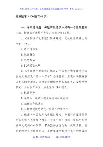 / 党章题库100题