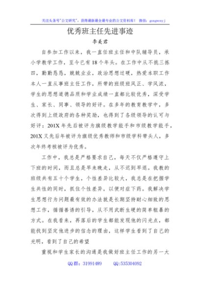 / 优秀班主任先进事迹