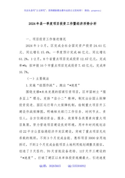 / 2024年县一季度项目投资工作暨经济形势分析