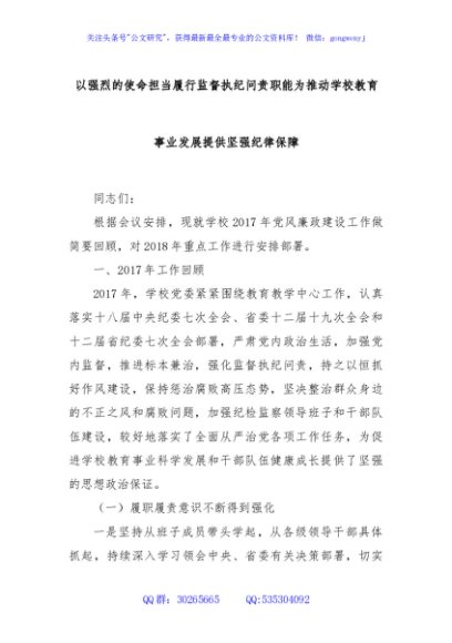 / 以强烈的使命担当履行监督执纪问责职能为推动学校教育事业发展提供坚强纪律保障