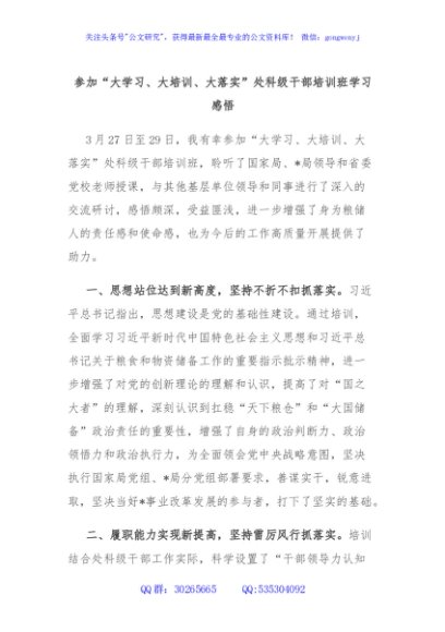 / 参加“大学习、大培训、大落实”处科级干部培训班学习感悟