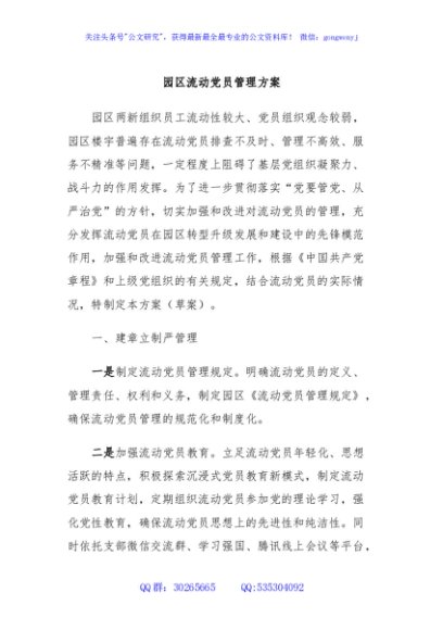 / 园区流动党员管理方案