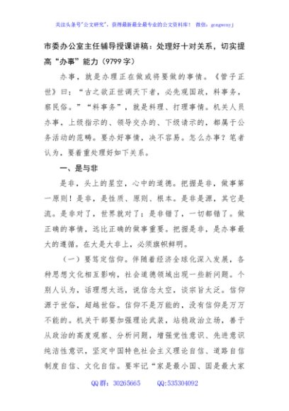 / 市委办公室主任辅导授课讲稿:处理好十对关系,切实提高“办事”能力