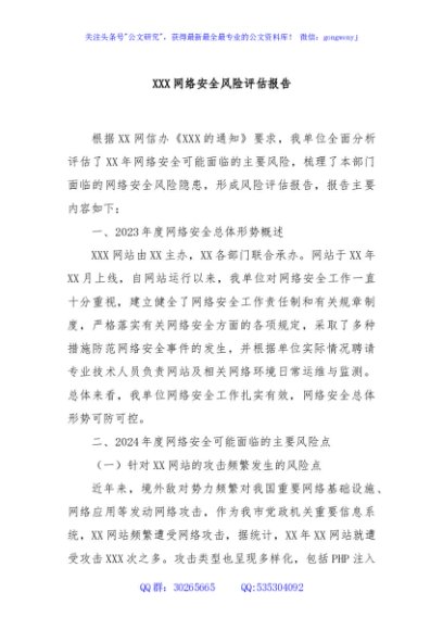 / XXX网络安全风险评估报告