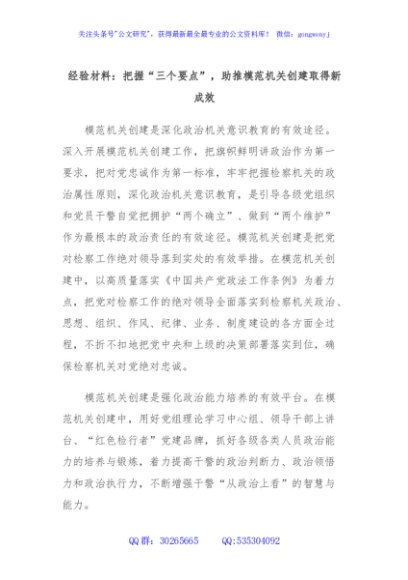 / 经验材料:把握“三个要点”,助推模范机关创建取得新成效