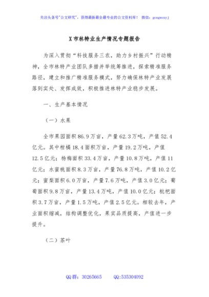 / X市林特业生产情况专题报告