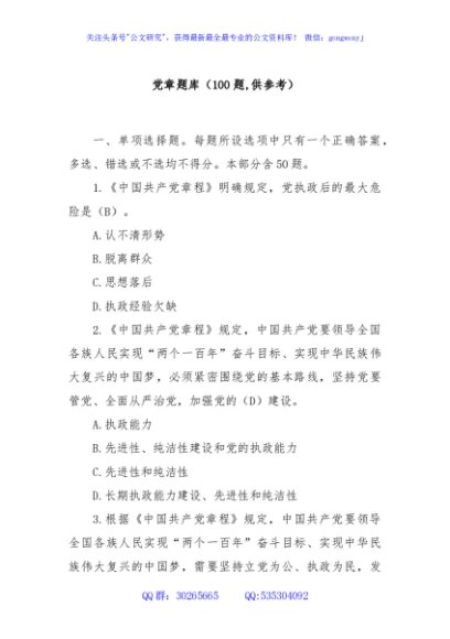 / 党章题库(100题,供参考)