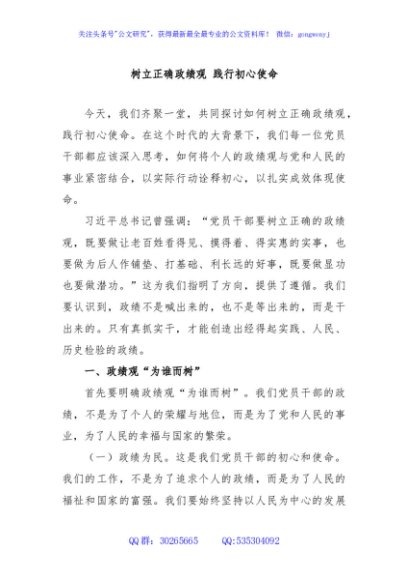 树立正确政绩观 践行初心使命