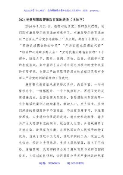 / 2024年参观廉政警示教育基地感悟(1828字)
