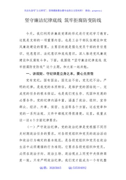 坚守廉洁纪律底线 筑牢拒腐防变防线