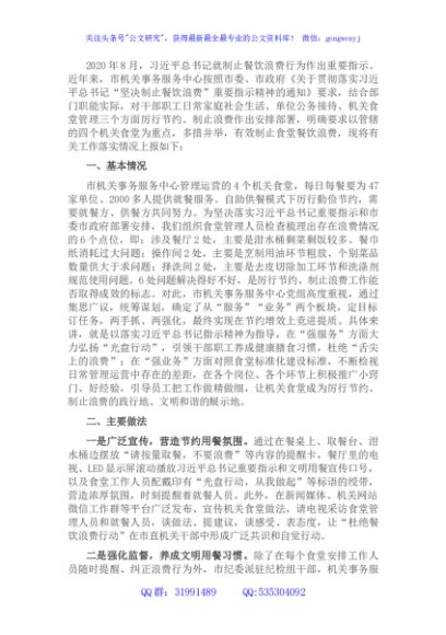 / 市机关事务服务中心关于制止餐饮浪费重要情况的报告