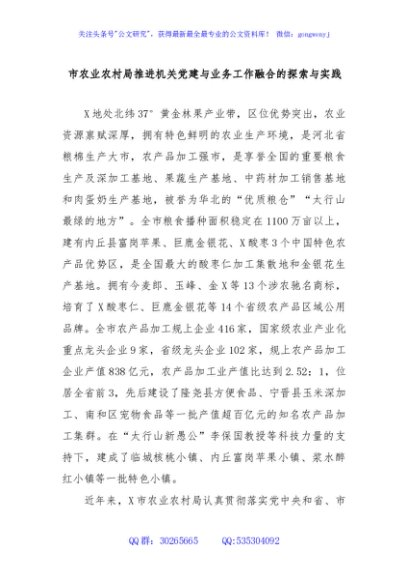 / 市农业农村局推进机关党建与业务工作融合的探索与实践