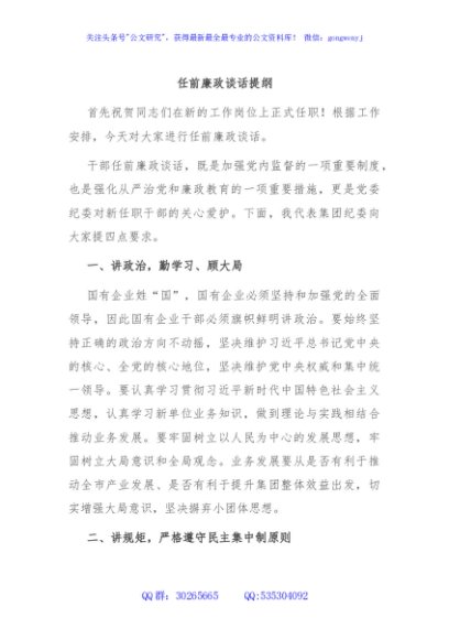 / 任前廉政谈话提纲