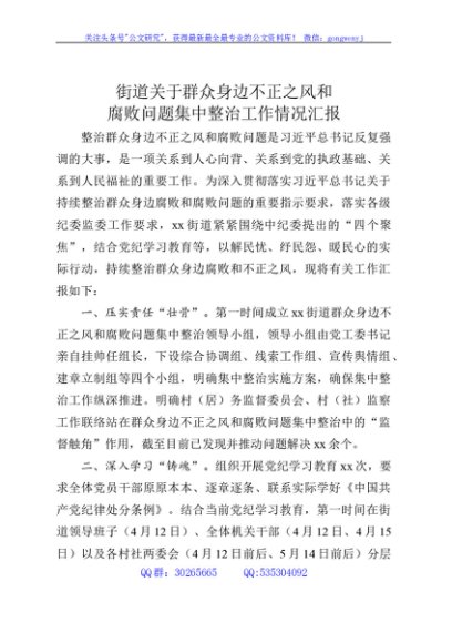 / 街道关于群众身边不正之风和腐败问题集中整治的自查报告