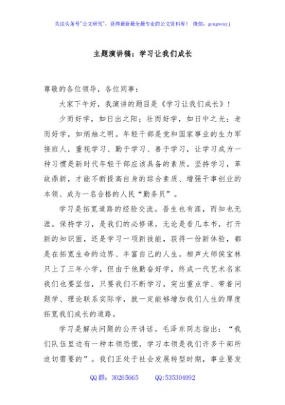 主题演讲稿:学习让我们成长