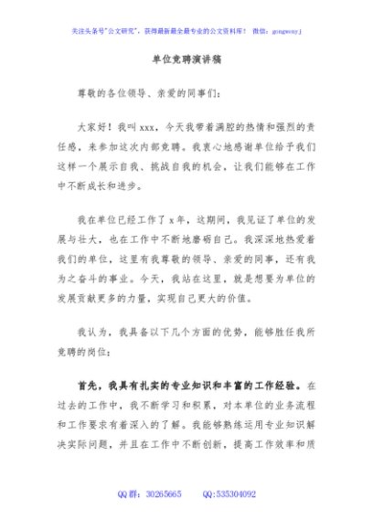 / 单位竞聘演讲稿