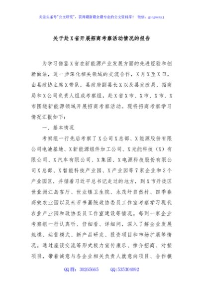 / 关于赴X省开展招商考察活动情况的报告