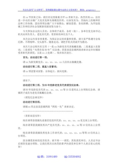 乡镇表彰大会主持词