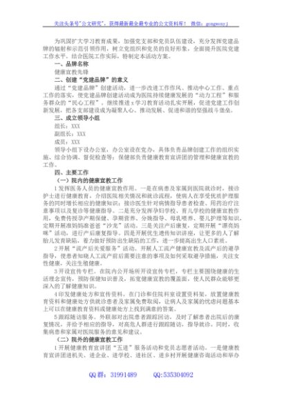 / 市妇幼保健院委员会创建“党建品牌”活动方案