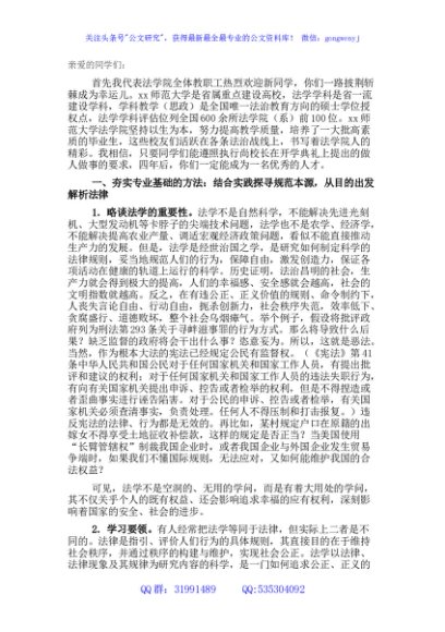 / 院长在“法科生第一课”上的致辞(新生第一课)