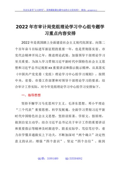 / 2022年市审计局党组理论学习中心组专题学习重点内容安排