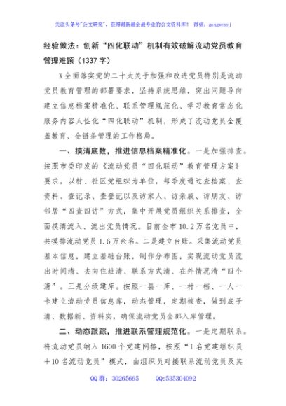 / 经验做法:创新“四化联动”机制有效破解流动党员教育管理难题(1337字)